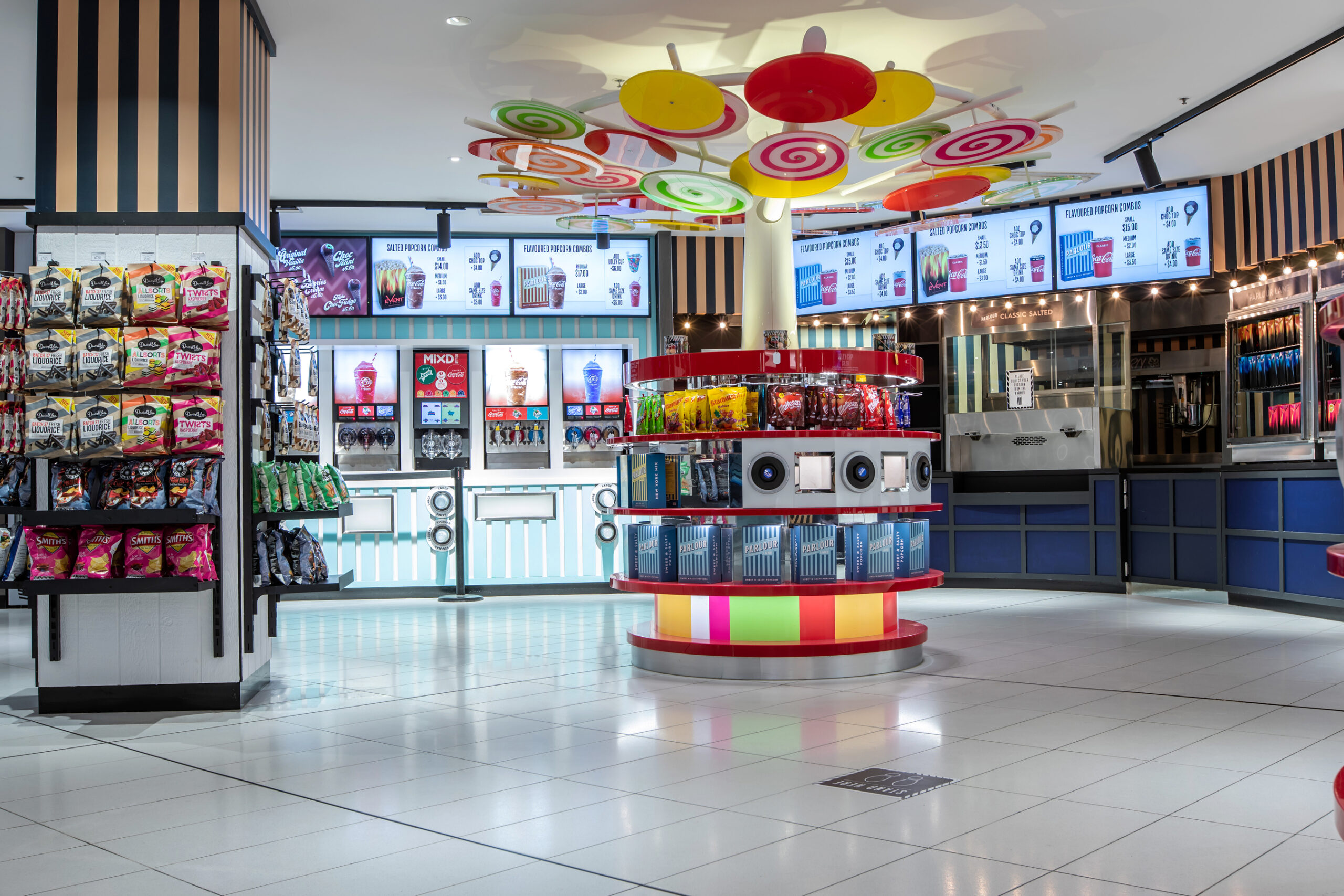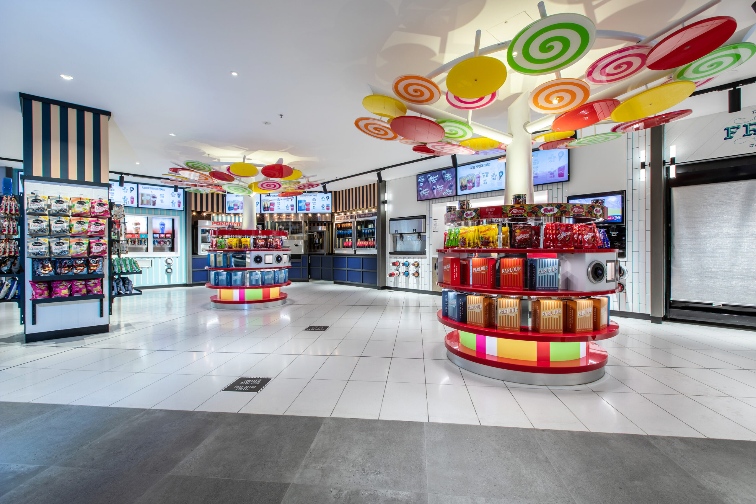 The candy bar underwent a complete transformation, featuring a new layout, high-end joinery, upgraded lighting, and feature finishes to enhance customer flow and elevate the overall retail experience. Cinemas were refurbished with new wall linings, upgraded acoustic treatments, floor finishes, and select seating enhancements to align with Event Cinemas’ evolving premium cinema standards.