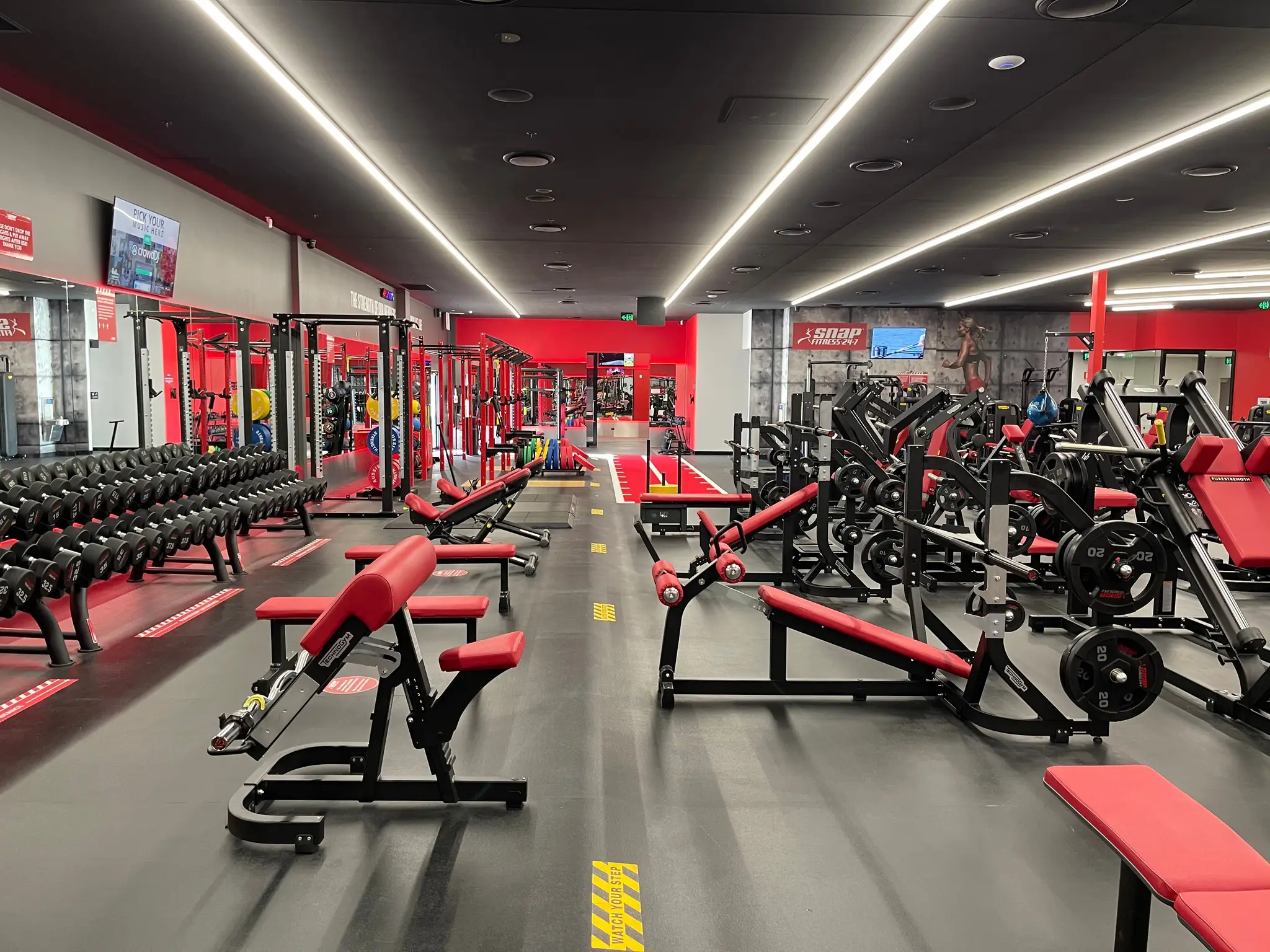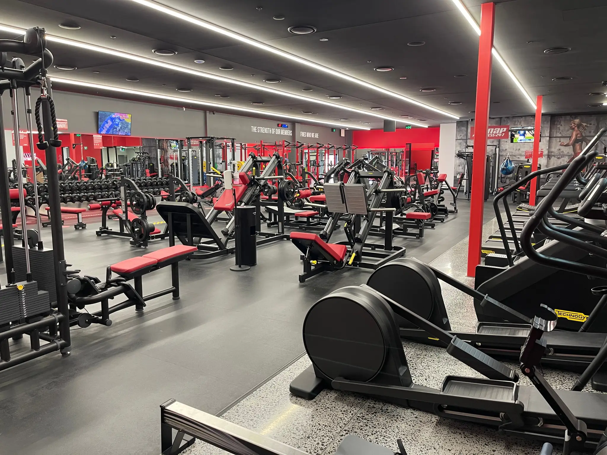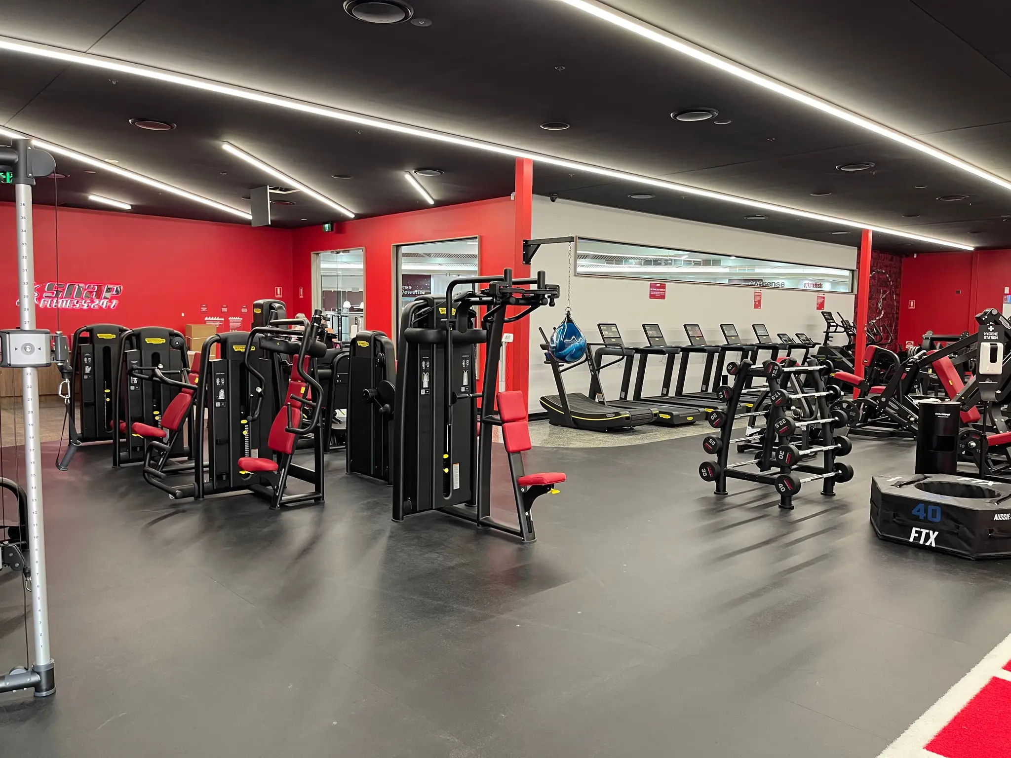 Snap Fitness Mount Annan was developed as a modern, high-performance 24/7 gym. The fitout features zones for cardio, strength, functional, and group training, alongside private offices, consulting rooms, and member amenities. Rubber flooring, a custom reception, feature wall, and integrated lighting define the facility.